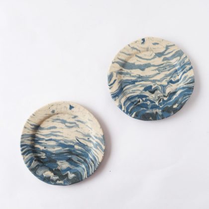 Nerikomi Pottery Bowl, Handmade Round Plate, Okinawan Cycad Leaf Pattern